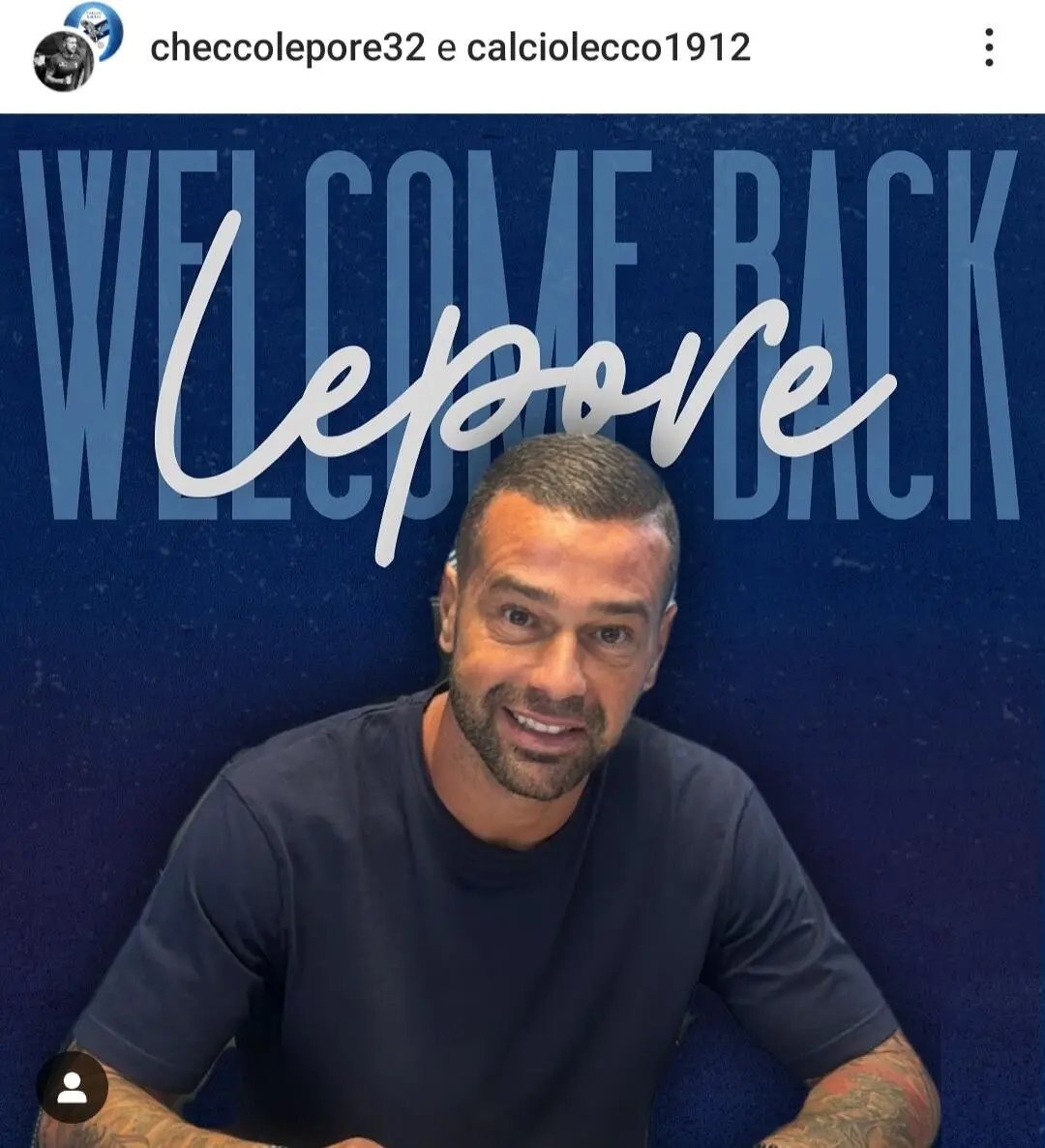 Dai social del calciatore e della società lombarda l'annuncio: ancora insieme Lecco e Lepore