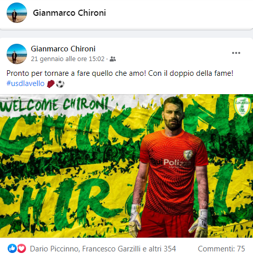 Chironi ripartirà dal Lavello (sempre in Serie D, SOPRA IL POST DAI SOCIAL DEL PORTIERE), formazione allenata dal figlio di Zdenek Zeman, Karel, un posto dove è decisamente complicato fare il portiere viste le tattiche del mister…!