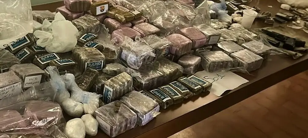 Era il magazzino della droga: oltre 25 chili di hashish, 13 di cocaina, 13 di eroina, 26 chili di marijuana. Tutti prodotti confezionati e già pronti per lo spaccio.