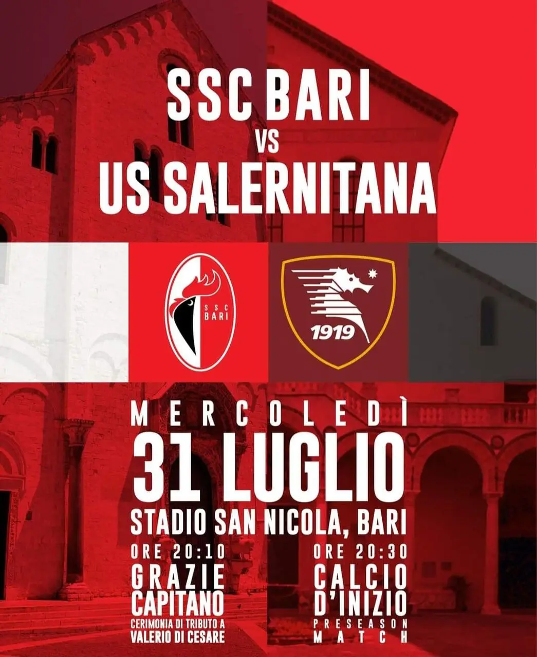 BARI - L'occasione sarà l'addio al calcio di capitan De Cesare, gli invitati gli “amici” della Salernitana, tifoseria lungamente vicina a quella del Bari.