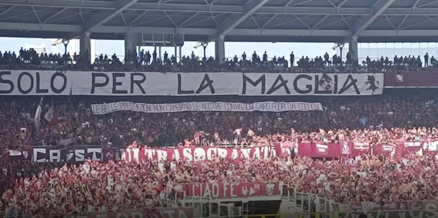 La protesta degli ultras granata, anche a Torino-Lecce in corso
