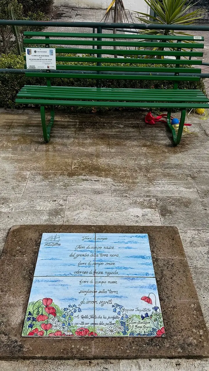Il Lions Club “Rudiae” poi ha donato una panchina verde alla scuola, non un semplice arredo ma una panchina che sia presidio di ascolto e di dialogo tra professori e studenti.