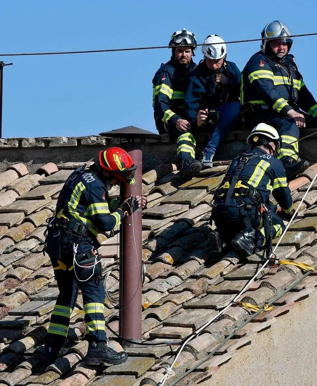 CITTA' DEL VATICANO - I Vigili del Fuoco hanno messo a punto il comignolo sul tetto della Cappella Sistina dal quale uscirà il fumo che annuncerà alla cristianità e al mondo l'elezione del prossimo Papa.