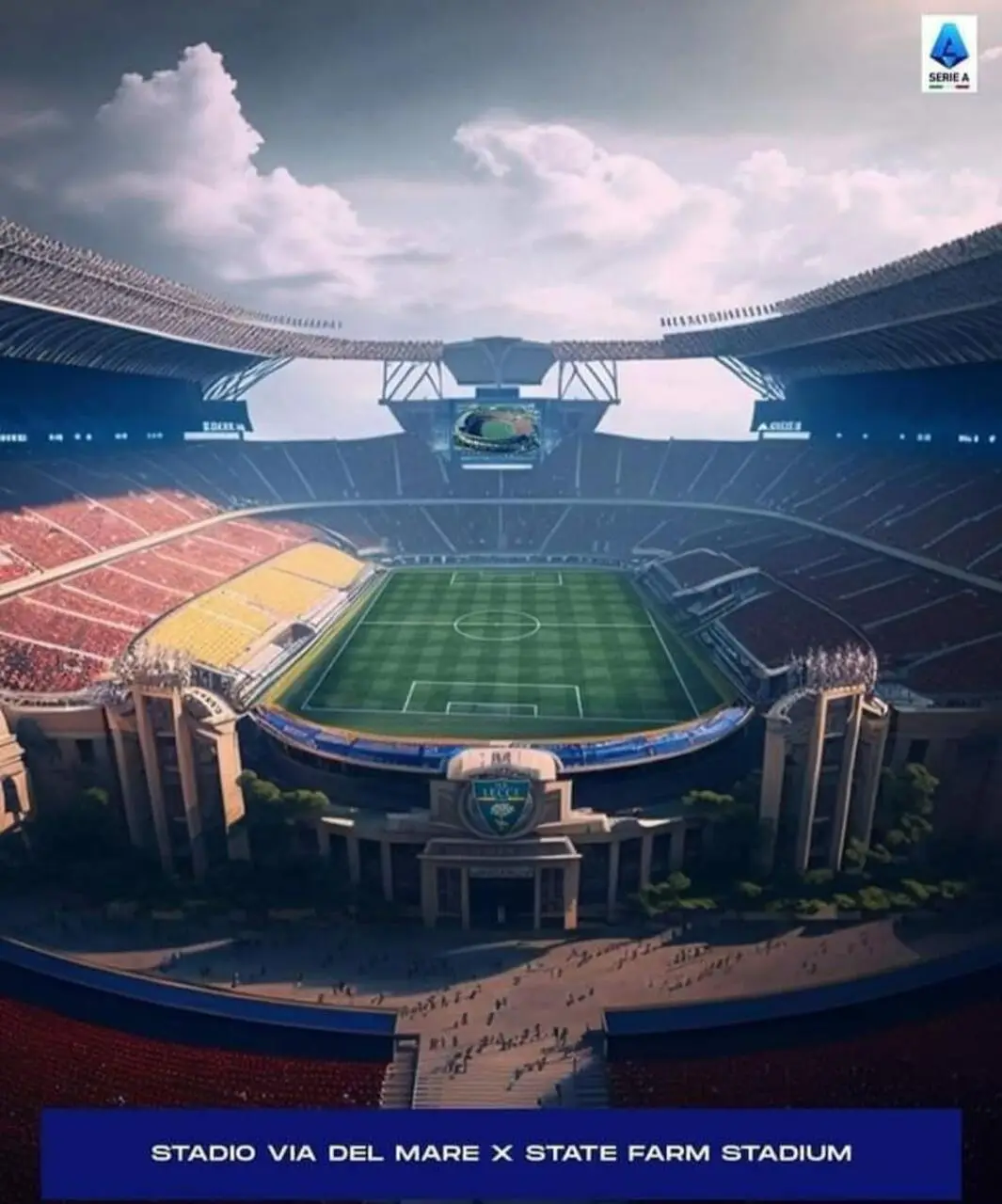 MILANO - La Lega Calcio di Serie A ha rifatto lo stadio “Via del Mare”: eccolo, nella foto, come sarebbe ampliato e ammodernato secondo l'intelligenza artificiale.