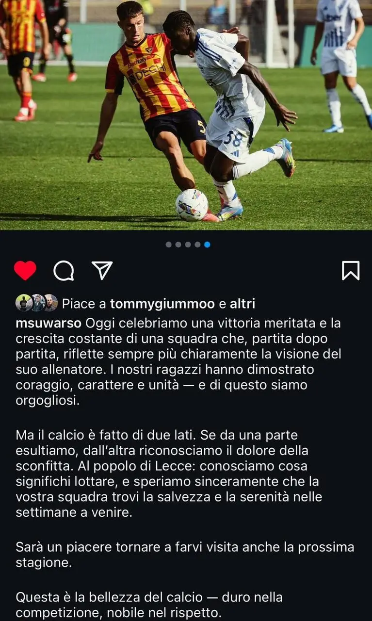“Celebriamo la nostra vittoria”, esordisce Suwarso, “ma il calcio è fatto di 2 lati. Riconosciamo il dolore della sconfitta. Al popolo di Lecce: conosciamo cosa significhi lottare, speriamo sinceramente che la vostra squadra trovi la salvezza e la serenità nelle settimane a venire”.