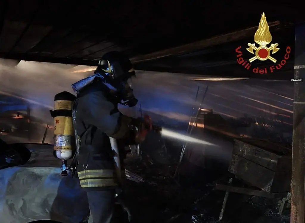 Le fiamme hanno avvolto una tettoia aperta su 3 lati, con copertura metallica, e una superficie complessiva di 150 metri quadrati adibita a deposito di materiali vari e al ricovero di un furgone aziendale. Sia la struttura che il veicolo sono andati completamente distrutti.