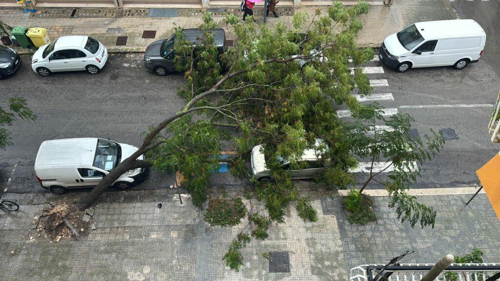 TRAGEDIA SFIORATA: cade un grosso albero davanti alle scuole, 4 veicoli colpiti, nessun ferito