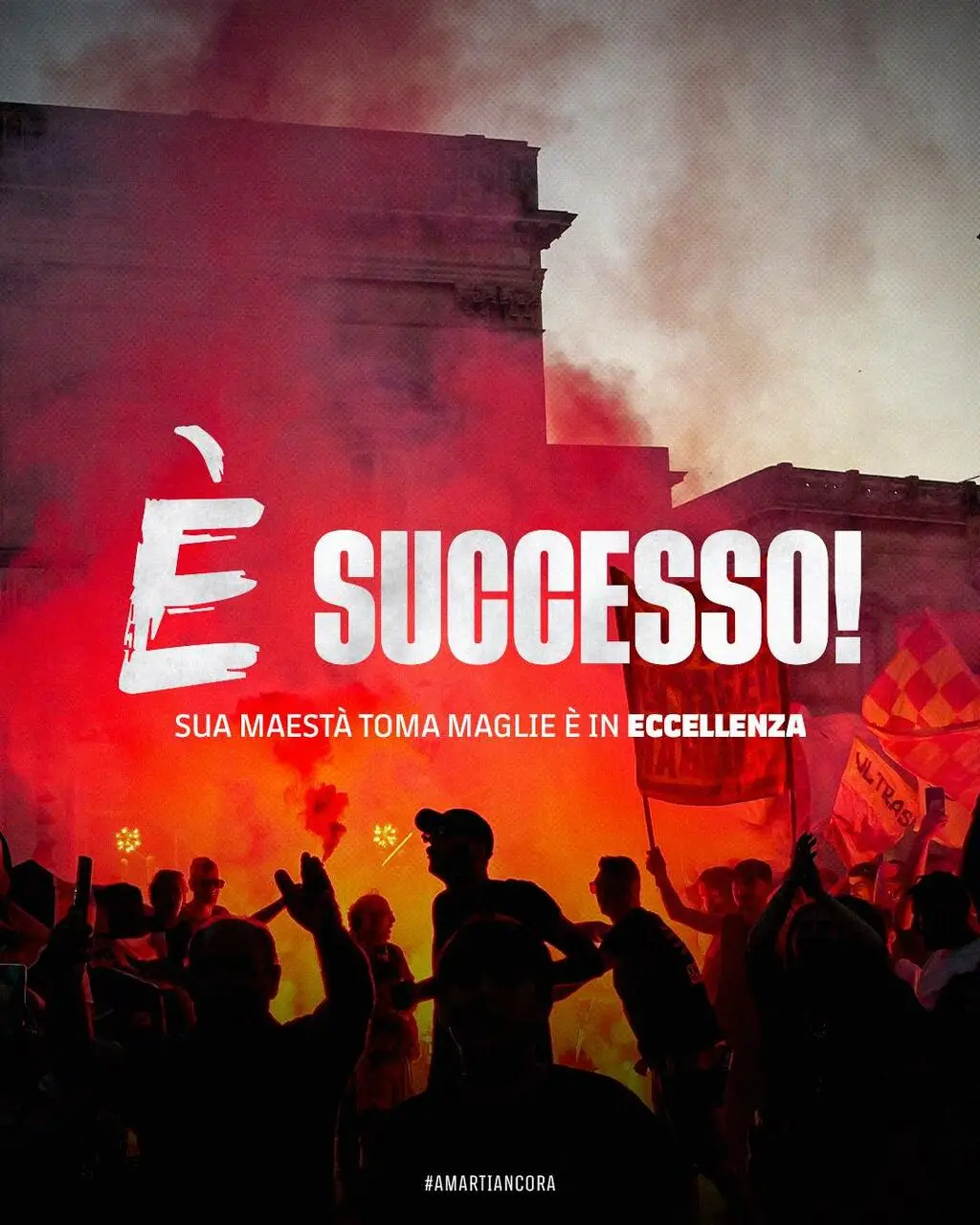La società giallorossa ha “stappato” l'entusiasmo con un post social e una grafica con cui ha significato il ritorno di “Sua Maestà” l'Eccellenza (FOTO SOPRA).