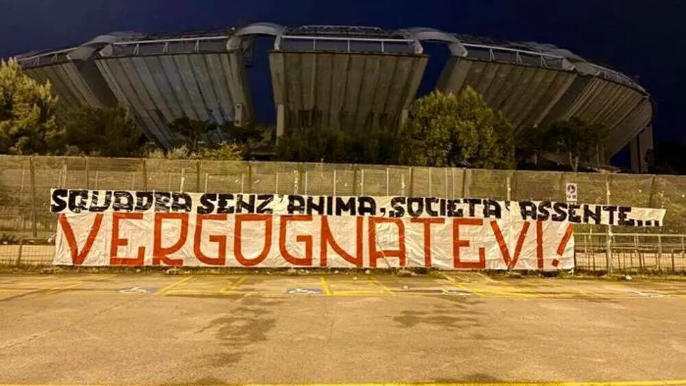 La decisione è stata presa in mattinata dopo una informativa della DIGOS di Bari (NELLA FOTO SOTTO UNO STRISCIONE DI REPERTORIO DEGLI ULTRAS BARI, DI PROTESTA VERSO L'ATTUALE SOCIETA').