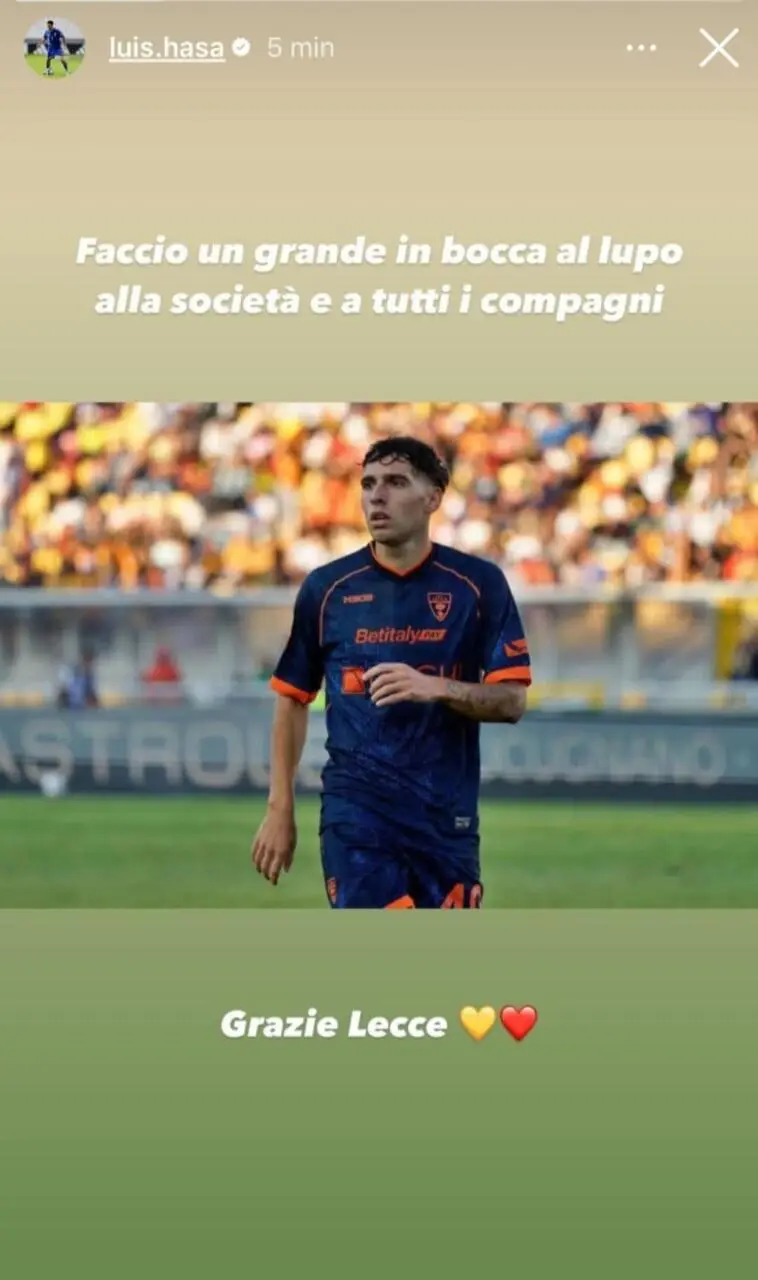 Il calciatore lascia il Salento con appena 1 presenza con la maglia del Lecce, collezionata in Coppa Italia, 10 minuti da subentrante in Lecce-Sassuolo 0-2, ed ha già salutato tutti attraverso i social, dal suo profilo ufficiale (FOTO SOPRA).