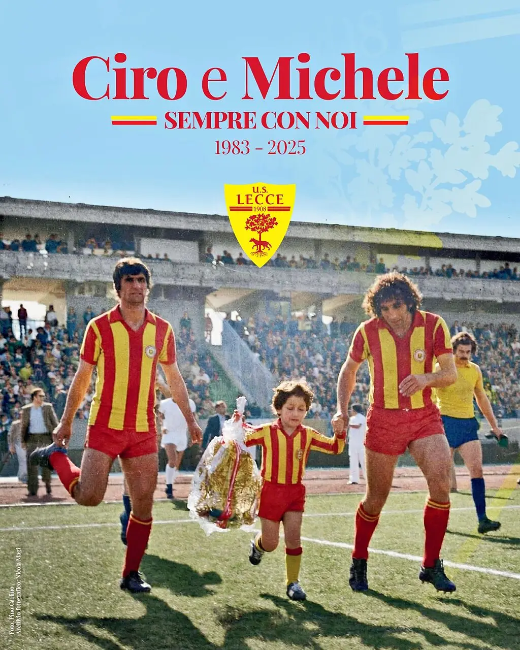 Una tragedia senza fine per i tifosi del Lecce e per il calcio italiano, un ricordo senza tempo, invece, per questa città dove Ciro e Michele continuano a vivere, nei murales, nella denominazione della Curva Nord, il posto più ambito del “Via del Mare”, ma soprattutto nei cuori di tutti i tifosi del Lecce (NELLA FOTO SOTTO IL RICORDO DELLA CURVA NORD 2 ANNI ADDIETRO NELLA CIRCOSTANZA DEL QUARANTENNALE).