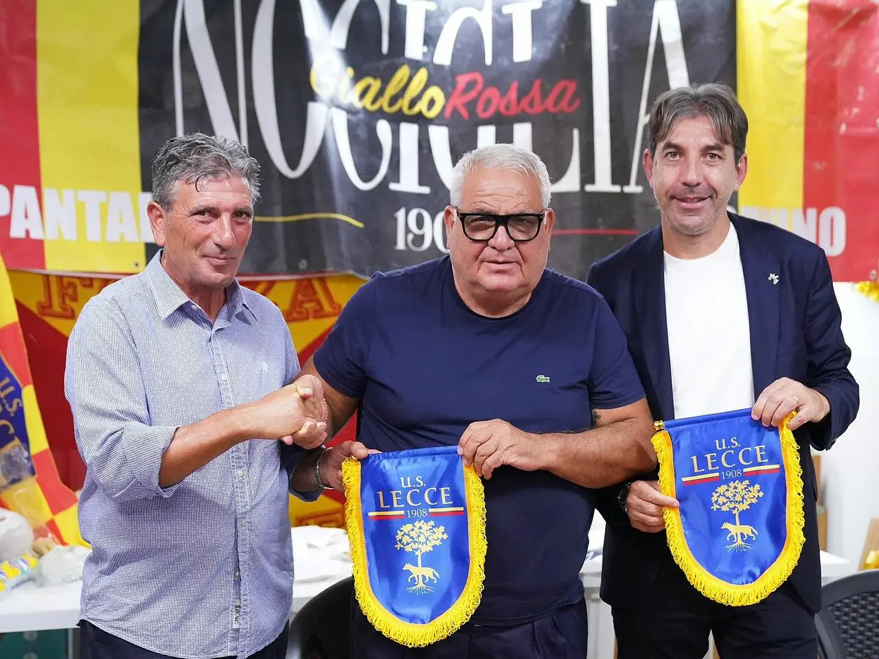 NOCIGLIA - Pomeriggio giallorosso per i DS del Lecce Pantaleo Corvino e Stefano Trinchera, ospiti dello storico club “Nociglia Giallorossa”, nel cuore del Sud Salento, dove la passione per il Lecce non teme confronti con le altre realtà del Salento.