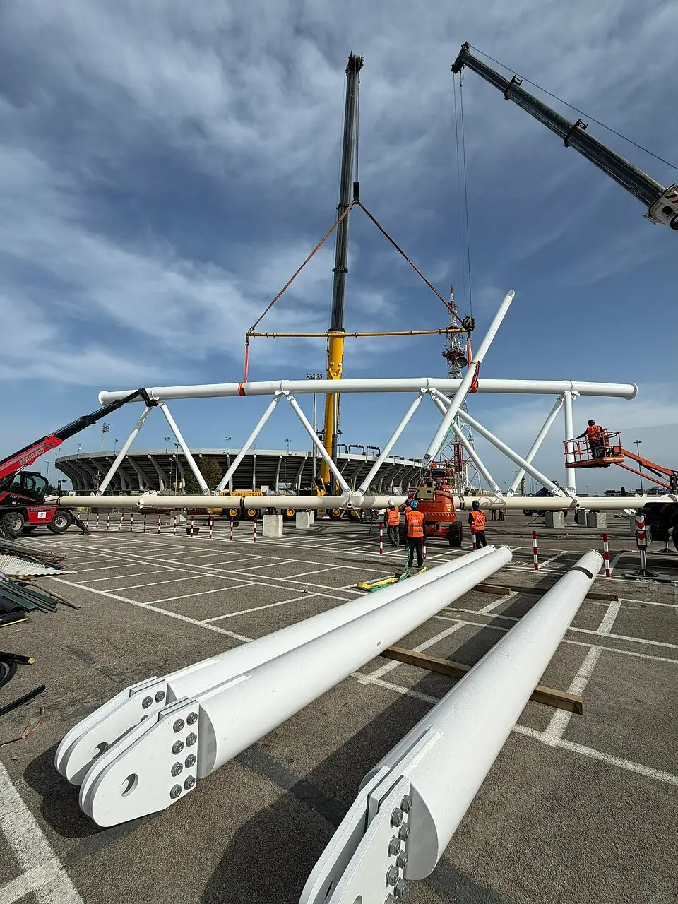 In questi giorni tanti passi avanti e lo scheletro della copertura che inizia a prendere forma, con molta somiglianza della struttura, come vi abbiamo raccontato in questi mesi, al design dello stadio “Olimpico” di Roma.