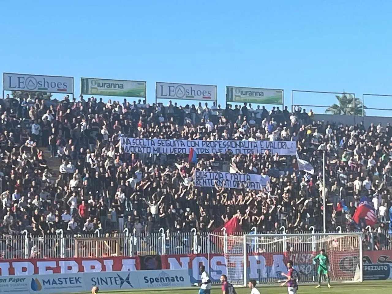 Ecco lo striscione della Curva rossoazzurra per ringraziare del suo operato in Tribunale l'avvocato, tra i fondatori della Curva Nord leccese