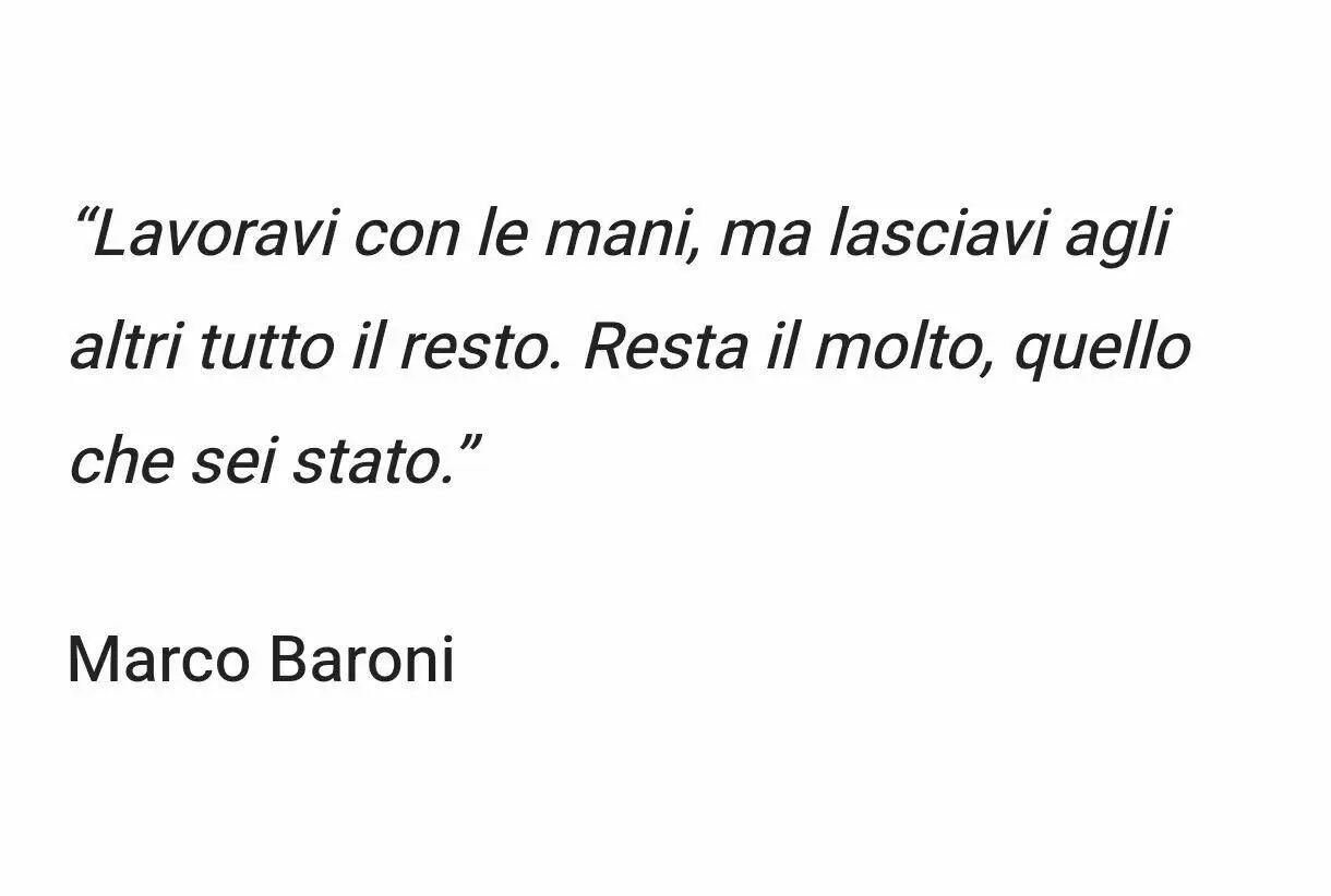 “Lavoravi con le mani, ma lasciavi agli altri tutto il resto. Resta il molto, quello che sei stato”, le parole di Baroni.