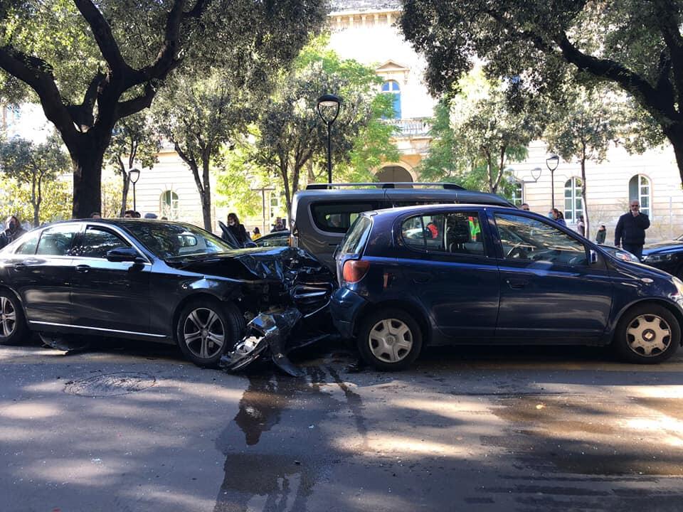 CITTA' IMPAZZITA, CENTRO NEL CAOS: maxi-tamponamento, 7 auto coinvolte