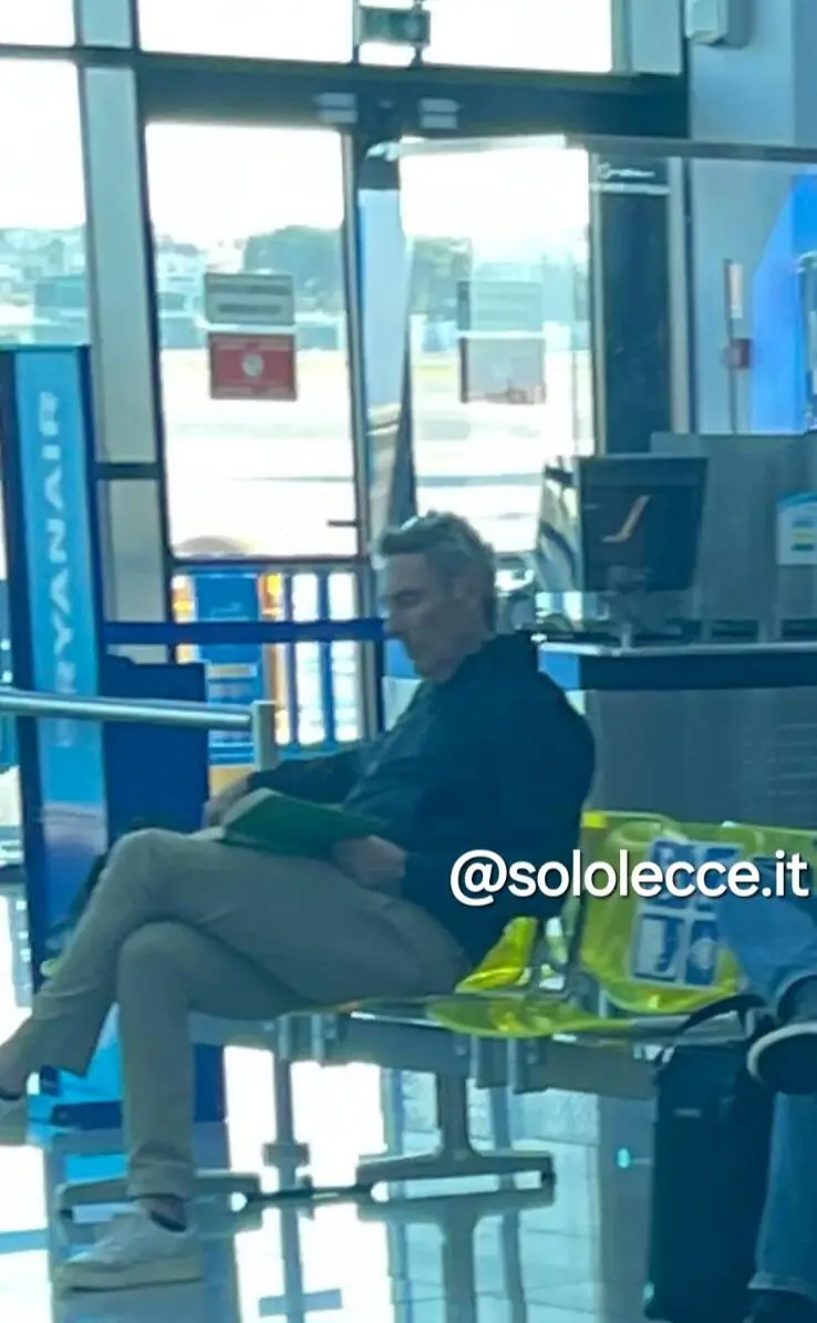 La foto di SoloLecce.it: il tecnico a Brindisi ad attendere l'imbarco per lasciare il Salento