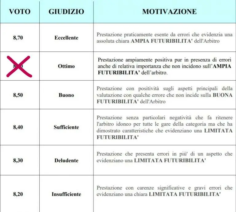 Lo si apprende da fonti interne all'Associazione Italiana Arbitri che ha praticamente considerato esente da errori la direzione arbitrale di tutta la sestina arbitrale designata tra Torino e la Sala VAR di Lissone (Monza e Brianza): se fossimo a scuola, per farvi comprendere un parallelismo nella valutazione, l'arbitro pugliese avrebbe preso un bel 9 scolastico, avvicinandosi alla perfezione.