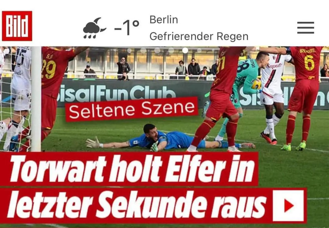 FALCONE FA LA STORIA E FINISCE SULLA "BILD": è il primo portiere italiano a conquistare un rigore in A