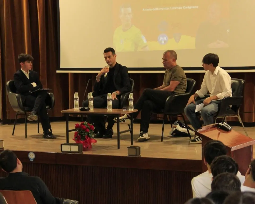 LECCE - Gran bella sorpresa per gli studenti del Liceo Scientifico “Banzi” di Lecce che hanno ricevuto la visita del Presidente del Lecce Saverio Sticchi Damiani e dell'arbitro della CAN di A e B Ivano Pezzuto della Sezione AIA di Lecce, pronti a sottoporti alle domande e alle curiosità dei giovani tifosi giallorossi, seguendo il canovaccio dell'incontro, il “fair play” nel calcio e nello sport.