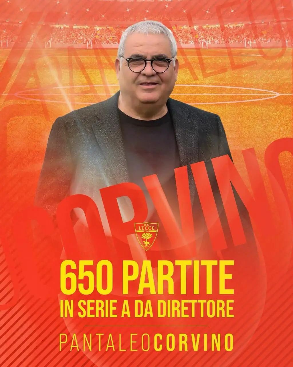 LECCE - Vigilia importante quella di oggi anche per il DS del Lecce Pantaleo Corvino che domani taglierà un traguardo storico nel mondo del calcio, la gara 650 in Serie A.