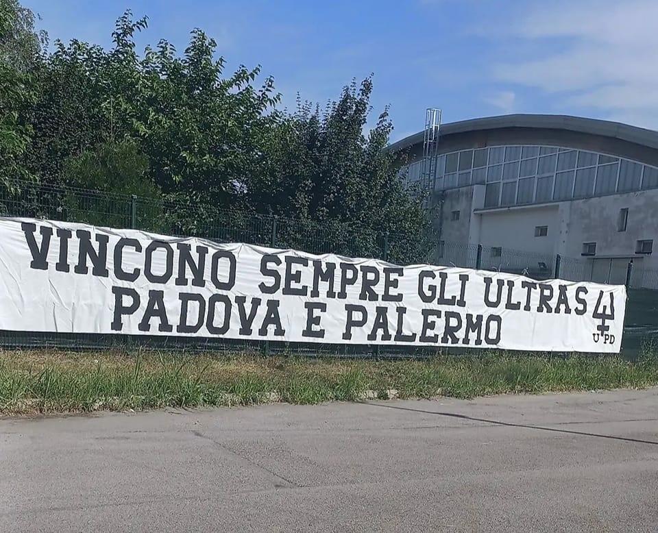 All'arrivo dei tifosi del Palermo, lungamente legati a quelli del Lecce, per anni, ricorderete, i tifosi biancorossi del Padova hanno sfoggiato lo striscione che vedete nella foto sopra.