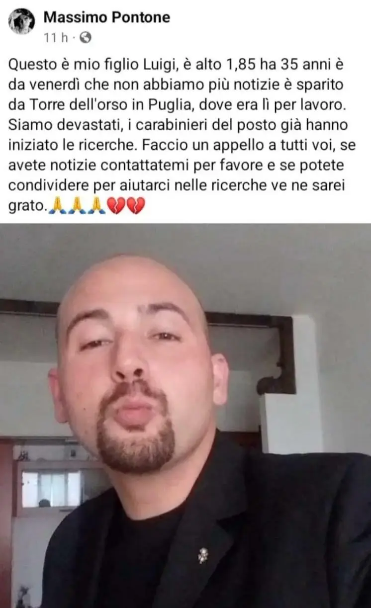 Proprio a causa del momento personale poco felice la famiglia aveva temuto il peggio, mobilitando ricerche in tutto il Salento dopo aver perso le tracce di Luigi per 2 giorni di fila.