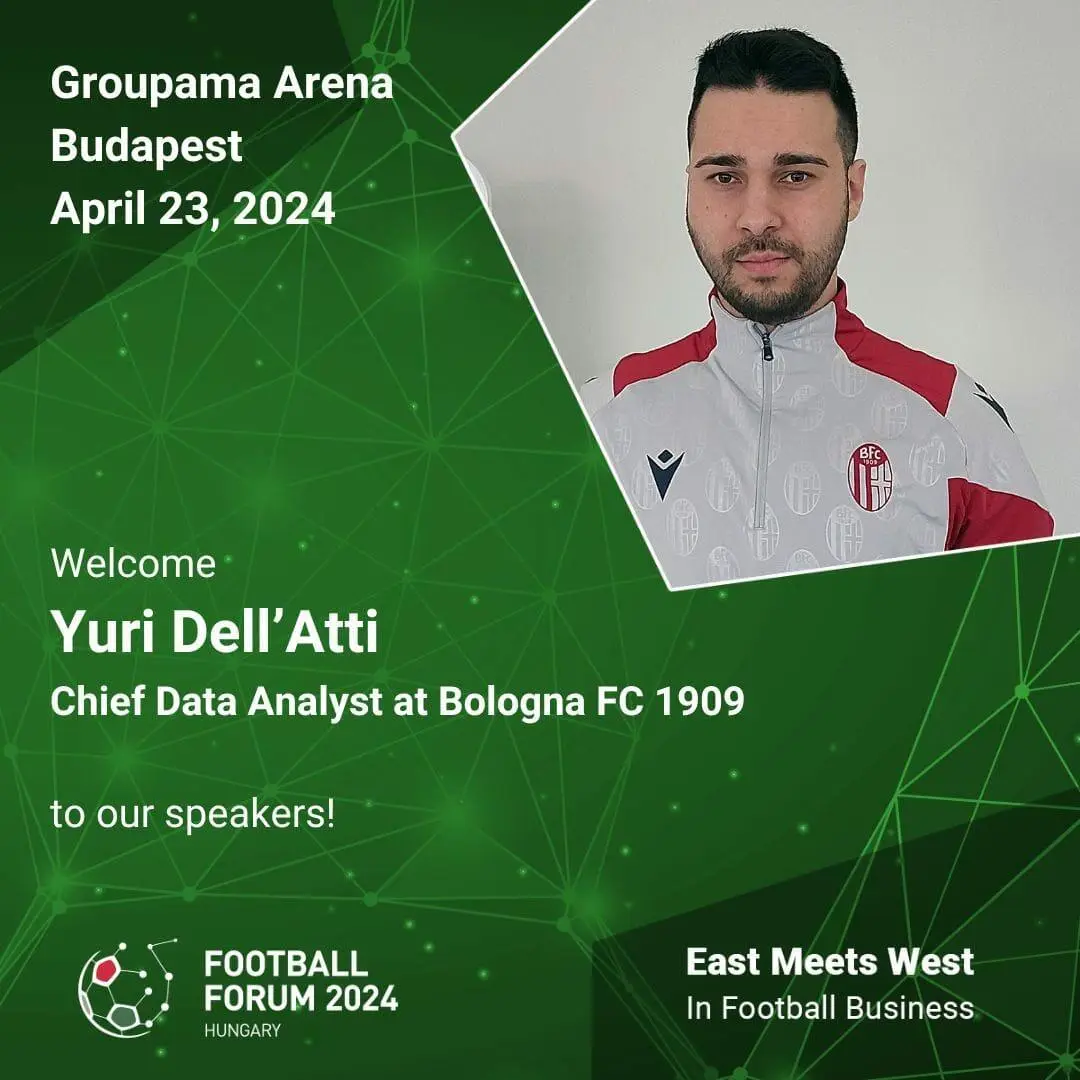 BUDAPEST - Nuova chiamata da relatore d'eccezione per il leccese Yuri Dell'Atti, “Chief Data Analyst” del Bologna invitato a partecipare al prossimo “Football Forum 2024” in programma alla “Groupama Arena” di Budapest il 23 aprile.