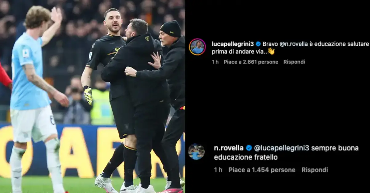ROMA - Le scintille del finale di gara di Lazio-Lecce sono proseguite sui social, dove i calciatori della Lazio hanno ironizzato sul “ciao ciao” di Rovella indirizzato al portiere del Lecce Falcone, “colpevole” da tifoso della Roma di aver esultato in maniera eccessiva all'andata, quando il Lecce ha ribaltato i biancocelesti al “Via del Mare” da 0-1 al 2-1 finale.