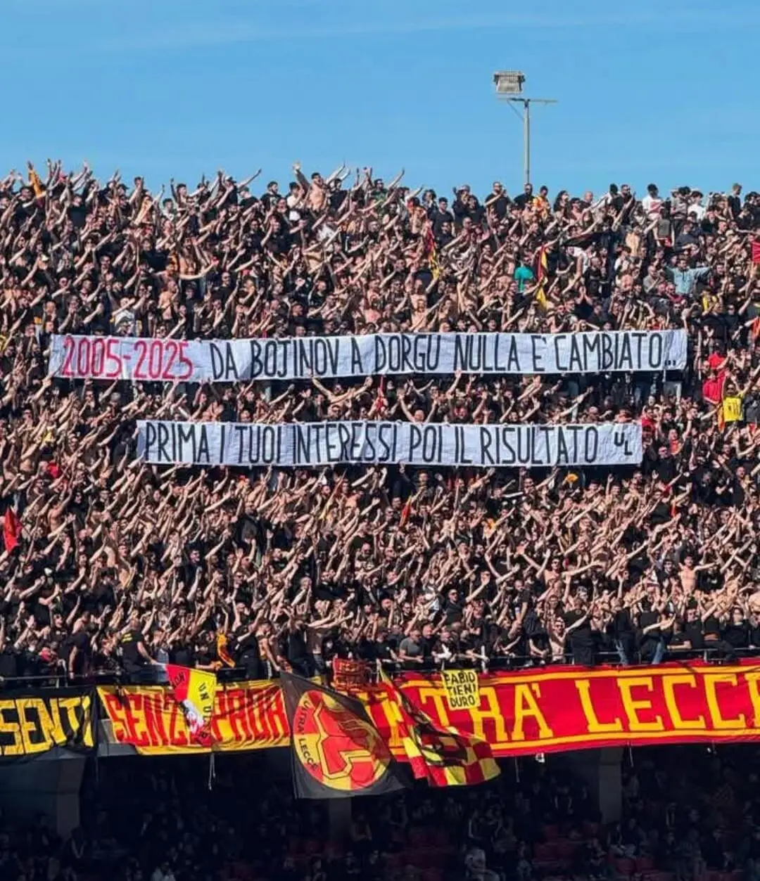 Per questo bisogna avere il coraggio e la forza che il Presidente Sticchi Damiani ha dimostrato nel tempo: in qualunque modo finisca questo campionato il Lecce non può rischiare di andare allo scontro con l'ambiente, polverizzare quell'armonia, quell'idillio che si era creato pure perdendo play off di C, retrocedendo dalla A alla B, mancando promozioni dalla B alla A. Sempre crescente, un legame ogni anno più forte.