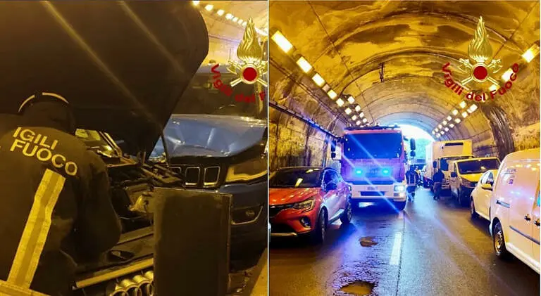 MAXI TAMPONAMENTO, 80 mezzi coinvolti e perdita di gasolio in galleria