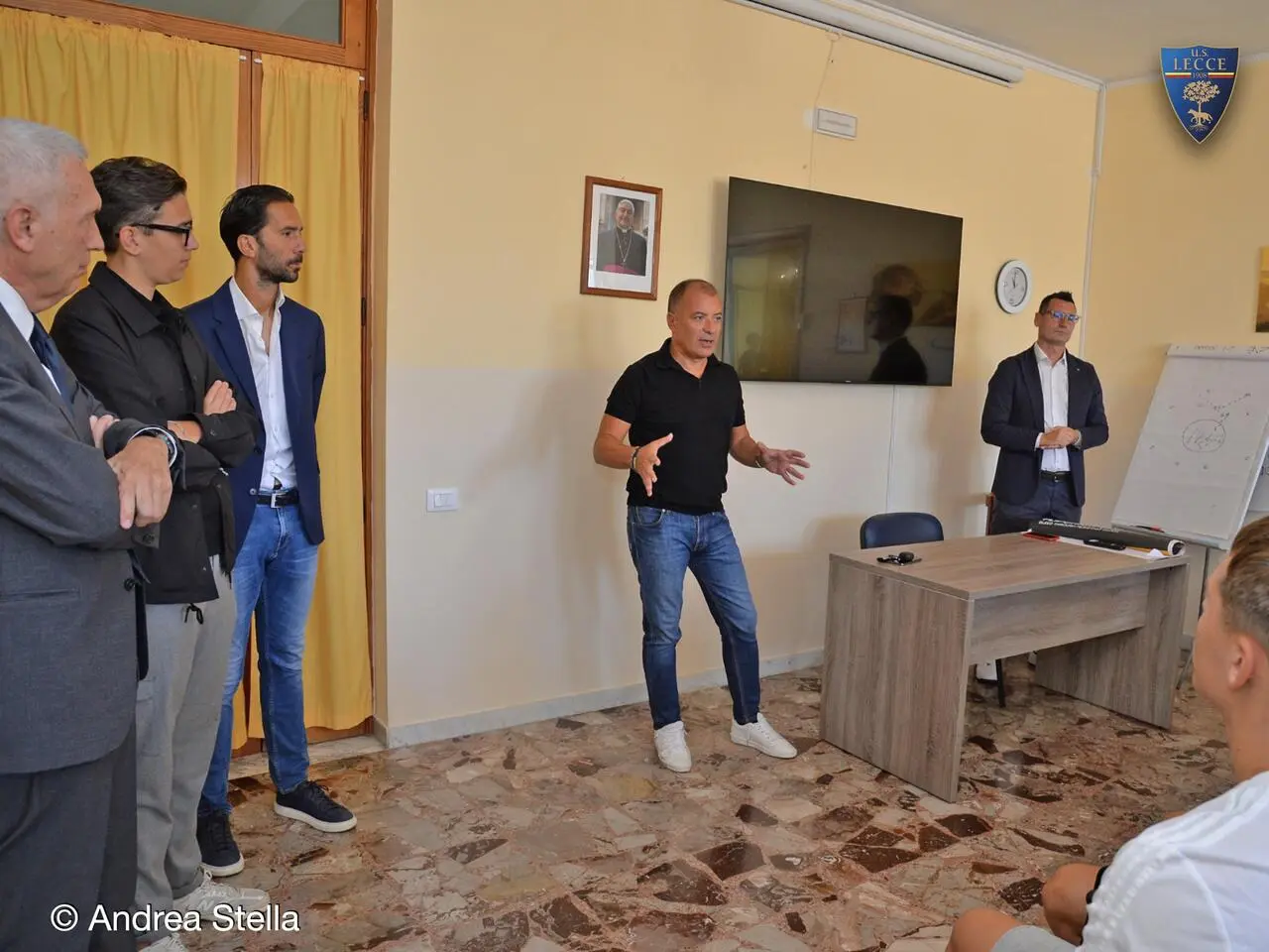 LECCE - Incontro nelle sale del Convitto “Madre Santina” di Lecce per i giovani della “Primavera” giallorossa che assieme a tutto lo staff tecnico delle giovanili maggiori hanno ricevuto la visita del Presidente Saverio Sticchi Damiani e dell'Amministratore Delegato Sandro Mencucci.