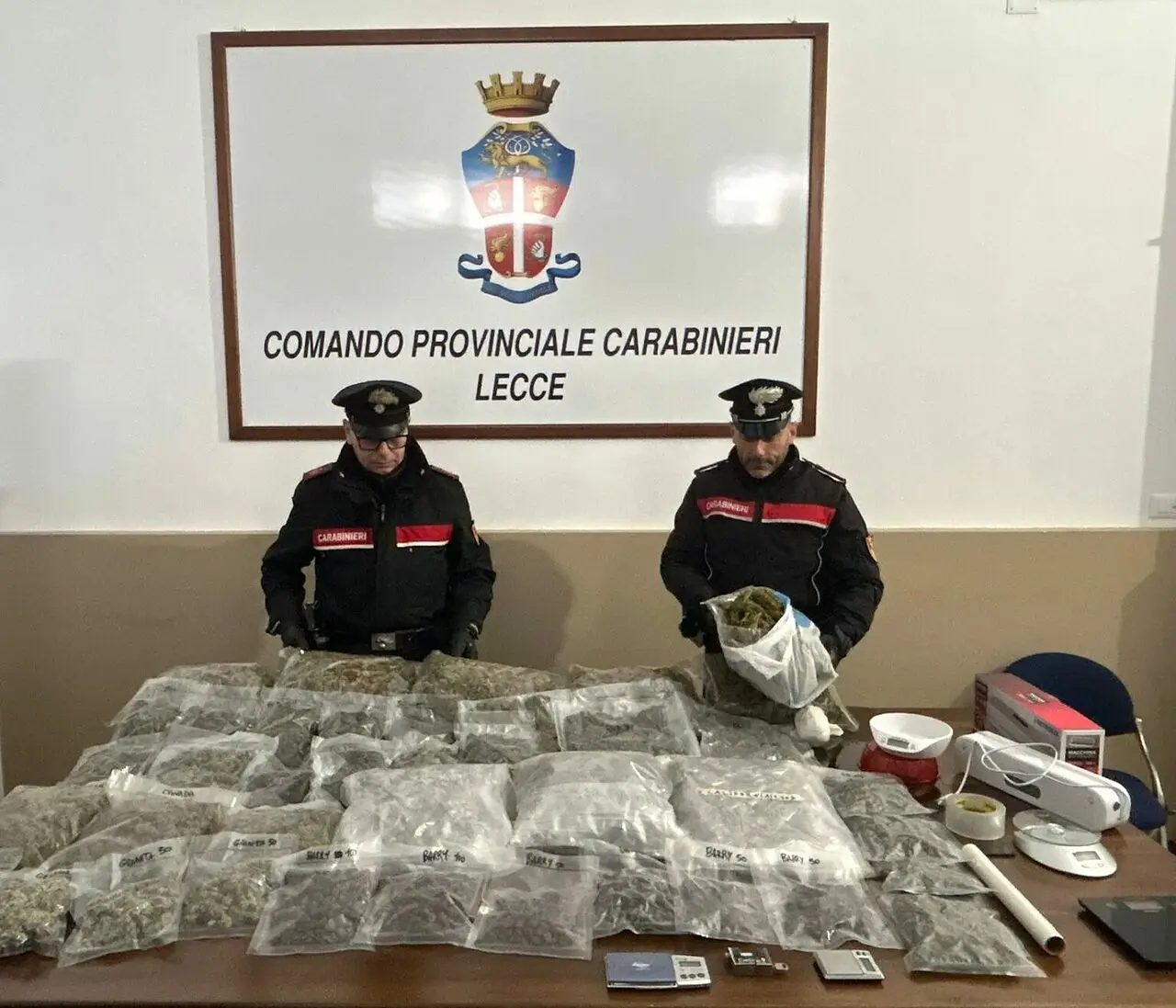 Dopo numerosi appostamenti, pedinamenti e una lunga attività di indagine i Carabinieri sono entrati in azione bloccando il 23enne sul fatto e arrestandolo. Assieme alla droga il giovane conservava tutto il materiale utilizzato per pesare e confezionare le sostanze stupefacenti.
