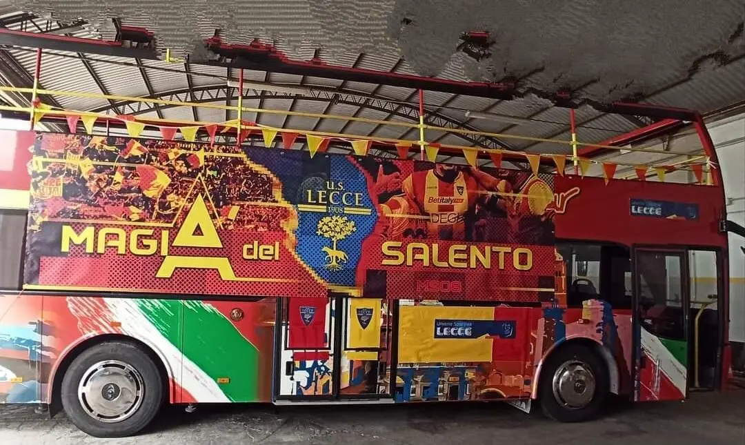 SoloLecce.it vi propone la foto del pullman scoperto con cui la squadra sabato sera avrebbe dovuto festeggiare in città, regalandosi all'abbraccio dei tifosi nel borgo antico, sino a Piazza Sant'Oronzo.