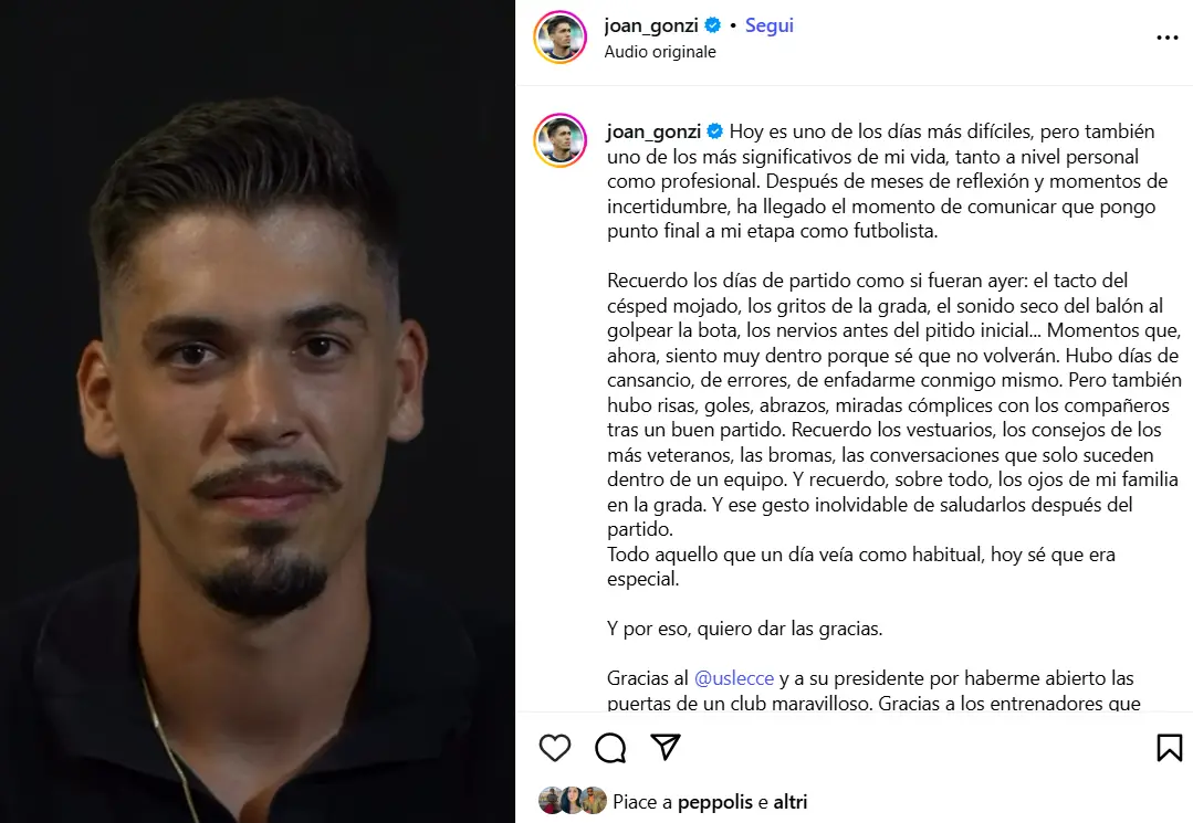 Per dare l'annuncio ha scelto di pubblicare un video emozionale sui social, in cui ha ripercorso anche tutta la sua carriera di calciatore delle giovanili in Spagna e delle giovanili del Lecce. Un video bellissimo.