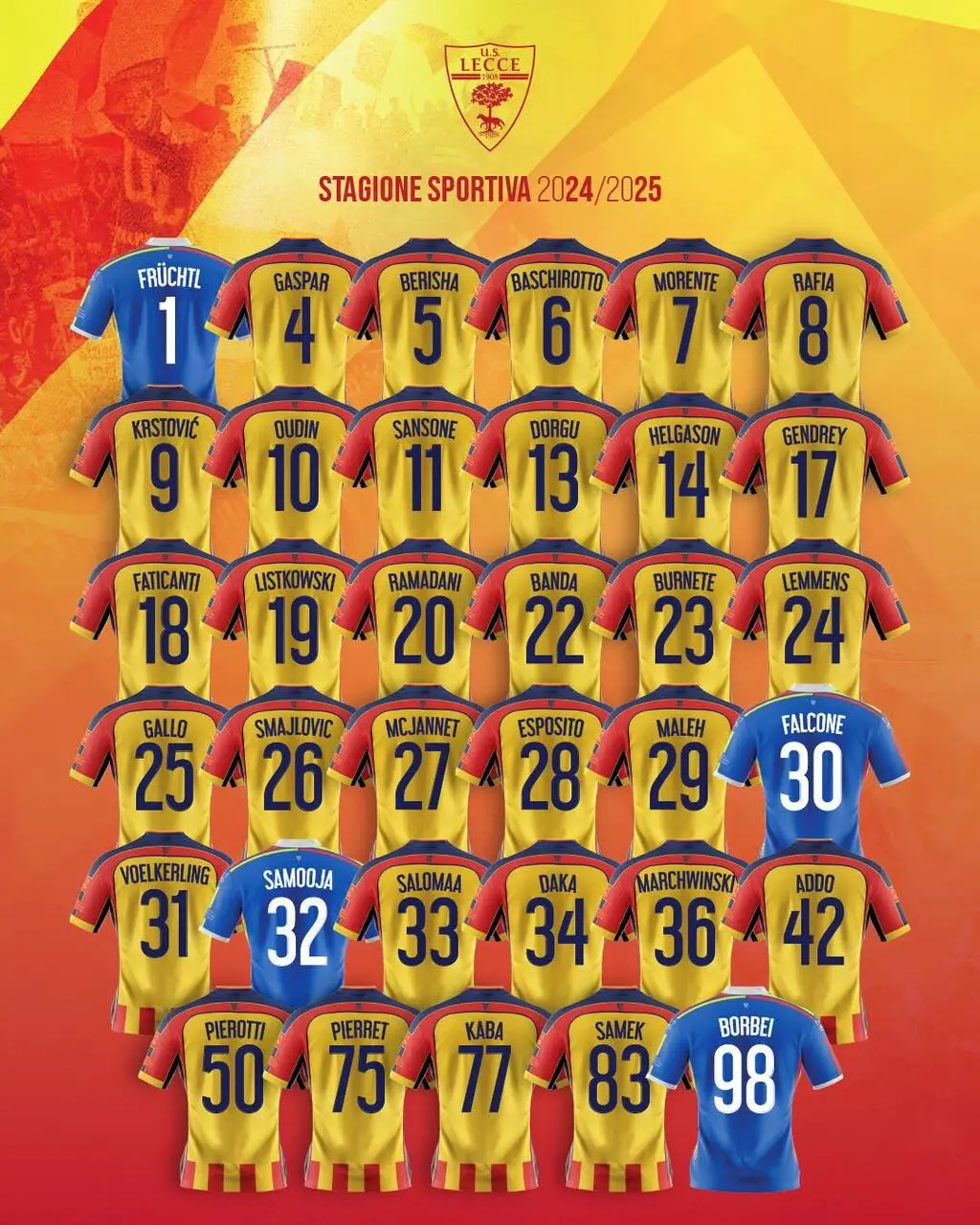 Il Lecce parte così, con ancora qualche esubero di troppo, rendendo conto alla Lega Calcio di Serie A dell'elenco ufficiale, ad oggi, dei calciatori che potranno essere utilizzati nel campionato 2024/2025, il 19° della storia giallorossa in Serie A.