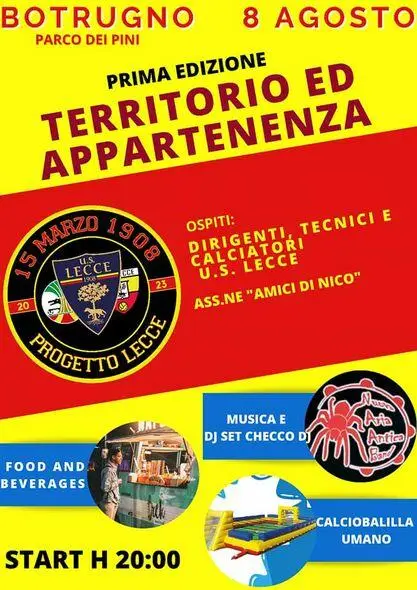 BOTRUGNO - Appuntamento giallorosso al “Parco dei Pini” di Botrugno alle 20 di domani, giovedì 8 agosto, con ospiti d'eccezione calciatori e una numerosa delegazione della dirigenza del Lecce.