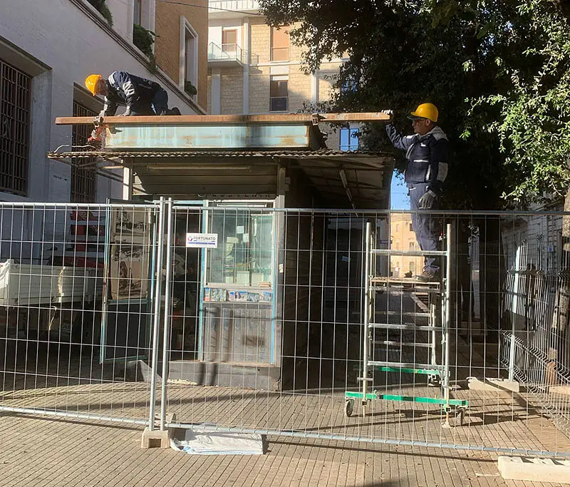 Si tratta dello spiazzo attualmente occupato da 2 chioschi commerciali chiusi da qualche anno e le cui licenze commerciali sono scadute in questi mesi.