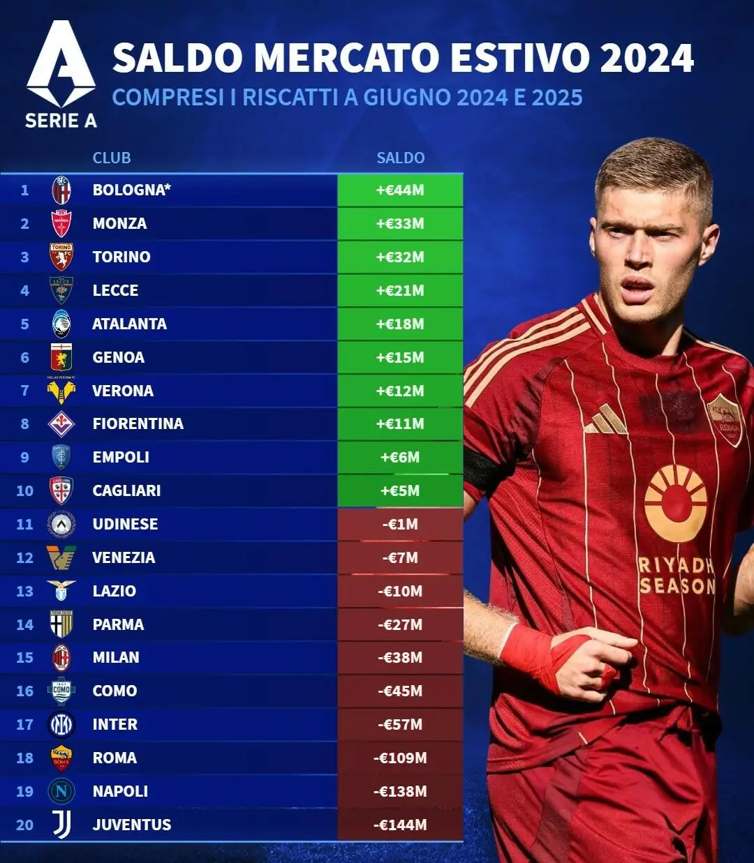 SALDO MERCATO! 10 hanno speso, 10 hanno chiuso in attivo. LECCE VIRTUOSO, DA CHAMPIONS LEAGUE