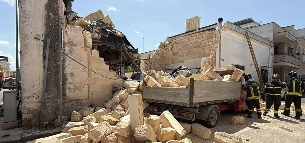 CARMIANO - Una palazzina è crollata a Magliano, frazione di Carmiano, nel Salento.