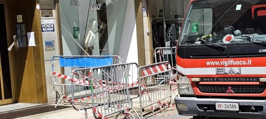 LECCE - Incredibile incidente nella notte in Via Zanardelli a Lecce, dove una FIAT Grande Punto è finita praticamente all'interno di un locale commerciale, un negozio di abbigliamento.